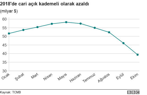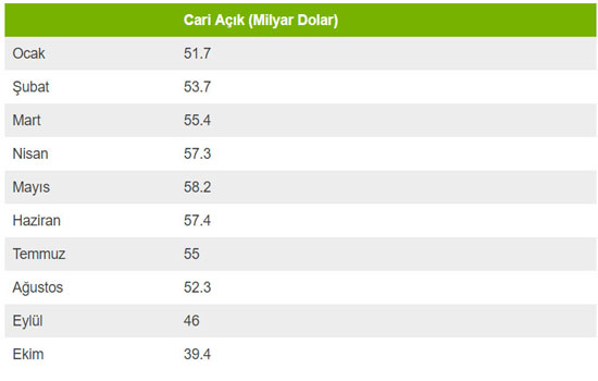 Kurdaki artış ihracatı artırdığı için artan ihracat ve düşen ithalat etkisiyle cari açık düşmeye başladı. Bu durumu aşağıdaki tablo ve grafikten izlemek mümkün.