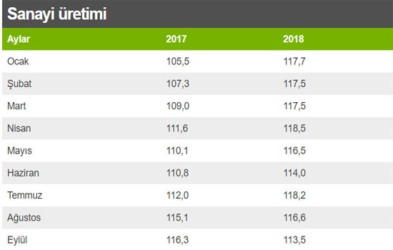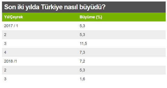 Aşağıdaki tablo 2017 yılının 4 çeyreği ile 2018 yılının il 3 çeyreğinin büyüme oranlarını gösteriyor.