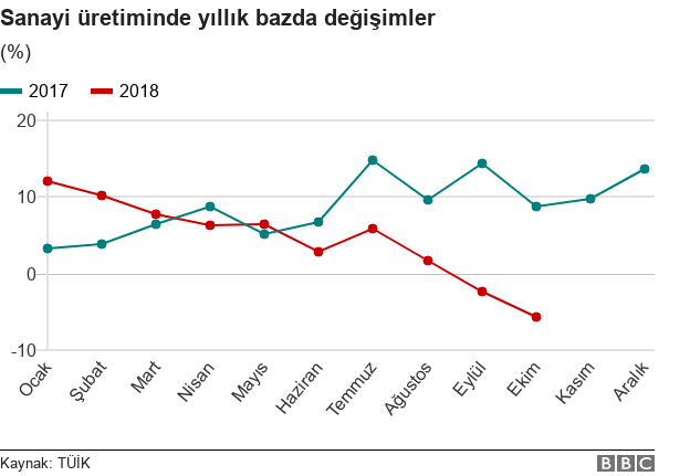 2018 yılında özellikle kur artışlarının yarattığı enflasyon artışı yurt içi talepte ciddi bir gerileme yaratınca başta sanayi kesimi olmak bütün alanlarda üretimde gerilemeler ortaya çıktı.