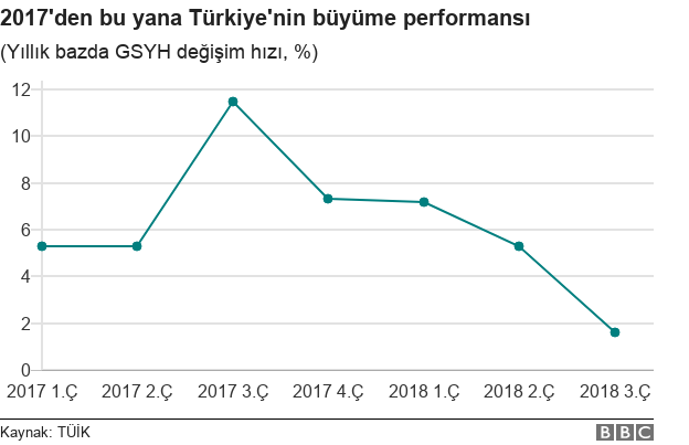 Türkiye, 2018 yılının sonlarına bu görünümle giriyor. Yılın son çeyreği için yüzde 2 dolayında bir eksi büyüme bekleniyor.