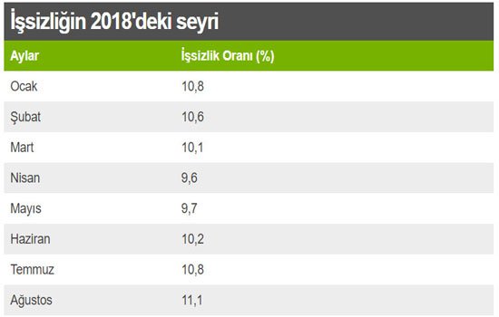 2018 yılına düşüş eğilimiyle başlayan işsizlik oranı yıl ortasından itibaren yeniden çıkışa geçti.