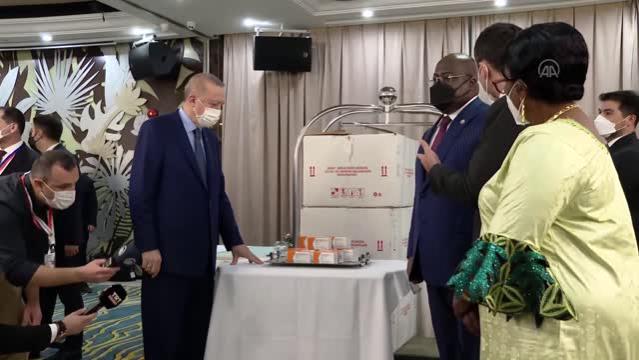 Kinşasa'da bir otelde gerçekleştirilen temsili törende, aşılar, Cumhurbaşkanı Recep Tayyip Erdoğan tarafından Kongo Demokratik Cumhuriyeti Cumhurbaşkanı Felix Tshisekedi'ye teslim edildi.