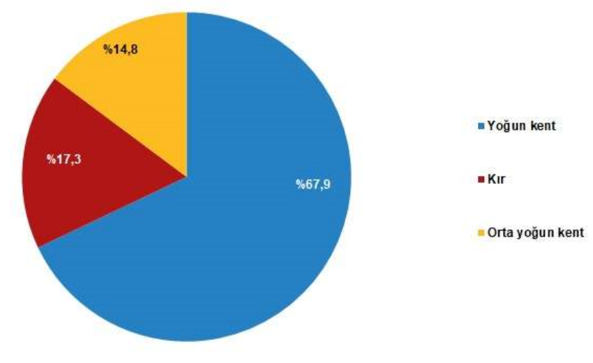 TÜİK verilerine göre, nüfusun %67,9'unu yoğun kent olarak sınıflandırılan yerlerde ikamet edenler oluşturdu.