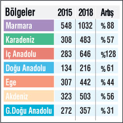 2015-2018 YILINDA BÖLGELERE GÖRE SİLAHLI SALDIRILARDA ARTIŞ