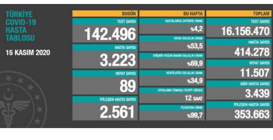 "Bugün tespit edilen 3.223 yeni hastamız var. Kayıplarımız günlük 100'e yakın. Sağlık çalışanlarımızın gücünün de sağlık alt yapılarının da kapasitesinin bir sınırı var. Tedbirlere uyarak mücadeleye güç verin."