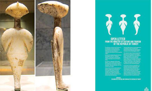 Kültür ve Turizm Bakanlığı, Türkiye’den yurtdışına kaçırılan Kilia tipi idolün New York’taki ünlü müzayede evi Christie’s tarafından satışa sunulduğu gün New York Times gazetesinde tam sayfa “açık mektup” yayınladı.