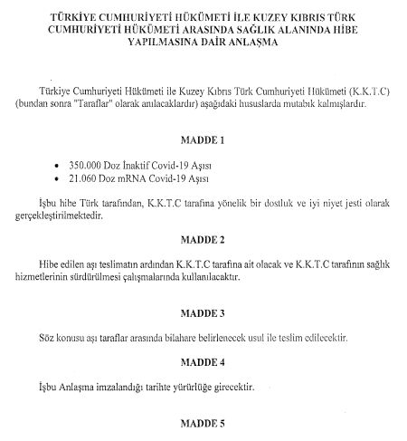 Türkiye bugüne kadar KKTC dışında Bosna Hersek, Nijer, Kongo, Nijerya, Tunus ve Özbekistan gibi ülkelere aşı hibe etmişti.