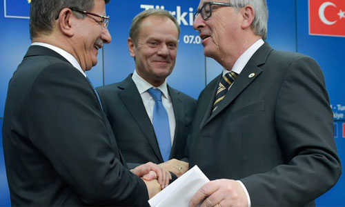 Tusk, AB-Türkiye Ortak Eylem Planı uygulanmasına rağmen Türkiye'den Yunanistan'a akışın çok yüksek olduğu ve ciddi düzeyde azaltılması gerektiğinde mutabık kaldıklarını söyledi. Türkiye'nin, Türk kara sularında yakalanan göçmenleri geri alacağını kaydeden Tusk, "bunun yasa dışı göç günlerinin sonu anlamına geldiğini" kaydetti.