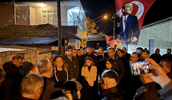 Tedbir amaçlı sağlık görevlileri de yetkililere eşlik etti. Haberin ardından evin balkonuna Türk bayrağı asıldı. Şehidin yakınları ve komşuları, aileye taziyede bulundu.