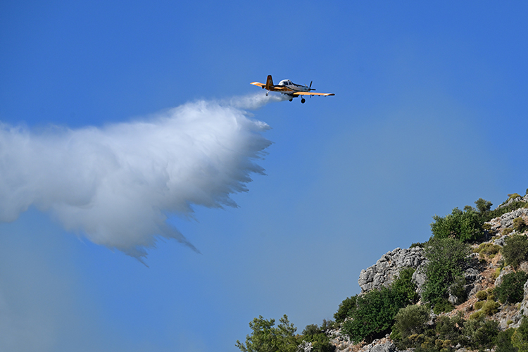İki uçak, altı helikopterle sarp ve kayalık bölgedeki alevlere müdahale eden ekipler, yangını kontrol altına aldı.