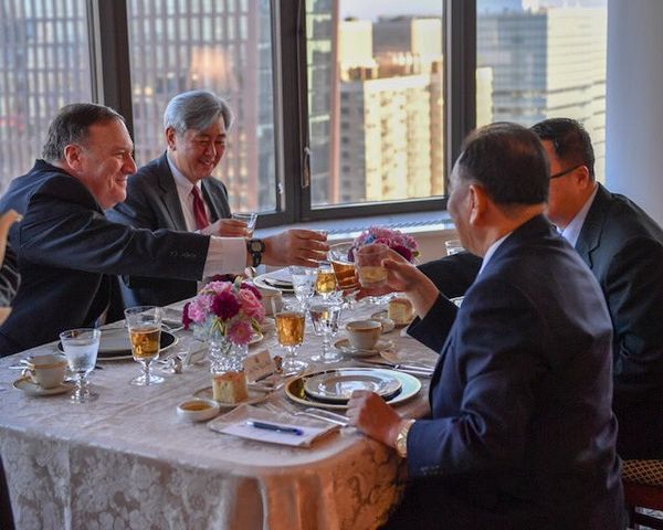Ajansların son dakika olarak geçtiği haberlerde, gece saatlerinde New York'ta Kim Jong Un'un sağ kolu General Kim Yong Chol ile Dışişleri Bakanı Mike Pompeo New York'un doğu yakasında bir dairede bir araya gelerek yemek yedi. Oldukça sıcak bir atmosferde geçtiği görülen buluşmanın fotoğrafları ise Pompeo'nun Twitter hesabından paylaşıldı.
