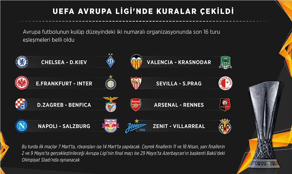 Avrupa Ligi son 16 turu eşleşmeleri şöyle: