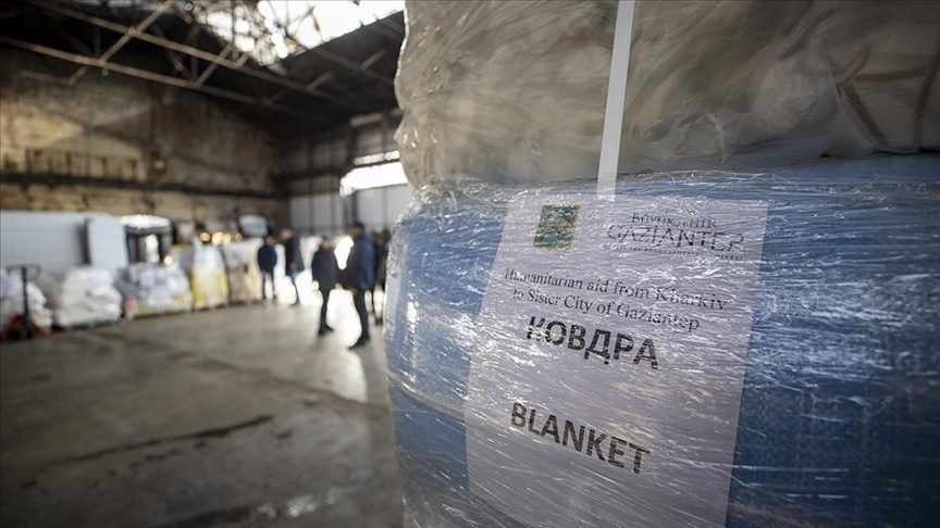 Rusya-Ukrayna Savaşı'nın sürdüğü Ukrayna'nın Harkiv kentinden, kardeş şehir Gaziantep için toplanan 22 ton insani yardım, Türkiye'ye gönderiliyor.