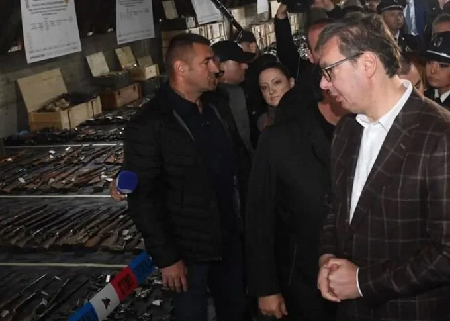 Vucic, ülkede son dönemde gerçekleştirilen ve 17 kişinin ölümüyle sonuçlanan iki silahlı saldırının ardından güvenlik güçlerine teslim edilen silahların bulunduğu Smederevo kenti yakınlarındaki Duvaniste'de açıklamalarda bulundu.