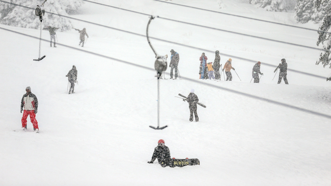 Kar kalınlığının 50 santimetreye ulaştığı Oteller Bölgesi'nde yerli ve yabancı turist yoğunluğu yaşanıyor. Ziyaretçiler kayak ve snowboard yaparak karın tadını çıkarıyor.