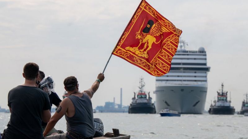 Venedik lagününde San Marco Meydanı'ndan ve Giudecca Kanalı'ndan geçen büyük gemiler, kentin altyapısına ve lagünün ekosistemine zararlı oldukları gerekçesiyle tepki çekiyor. Öte yandan cruise turizmine karşı çıkanlar olduğu gibi, bu sektörün ekonomik açıdan kente katkı sağladığı gerekçesiyle destek verenler de var.