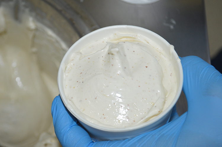Kılınç, ürettikleri 9 çeşit manda sütlü dondurmanın içeriğinde doğal meyve ile kuruyemiş kullandıklarını için kaliteli olduğunu anlattı.
