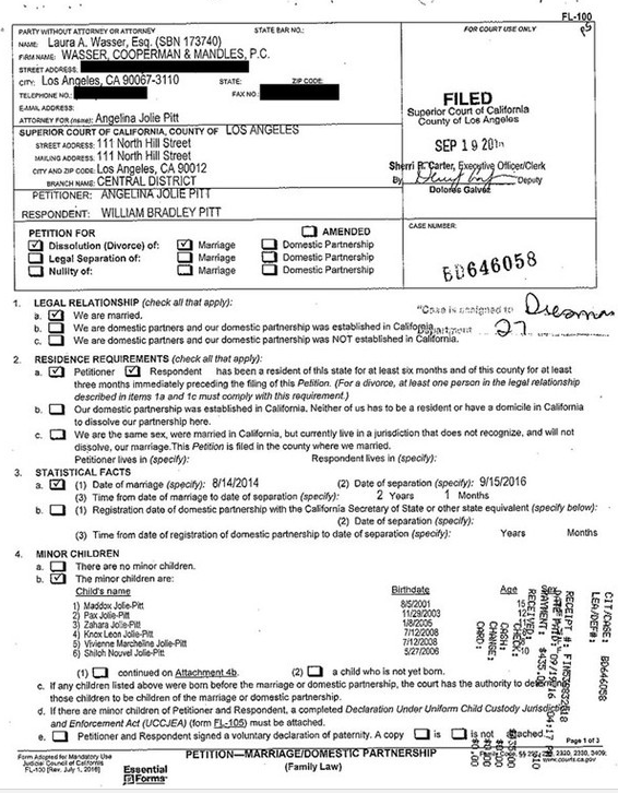 Angelina Jolie’nin mahkemeye dosya sunduğunu söyleyen kaynak, Jolie için hala Pitt’in hayatının aşkı olduğunu ve kararın kalbine ağır geldiğini söyledi. Kaynak, Jolie için “Şu anda önceliği çocukları” dedi. Mahkemeye boşanma dosyasını sunan 41 yaşındaki aktrisin, boşanmak için “şiddetli geçimsizliği” gerekçe gösterdiği öğrenildi. Avukat Laura Wasser imzalı dilekçelerde çocukların velayetinin de Jolie’de kalması istendi. İddialara göre Jolie, 52 yaşındaki aktörün altı çocuğuna muamelesinden memnun değildi ancak yine de Pitt’e çocukları görüş hakkı verilmesini istiyor.