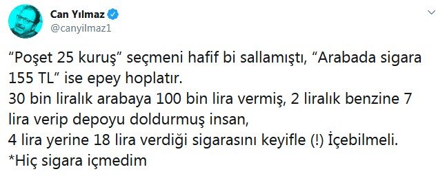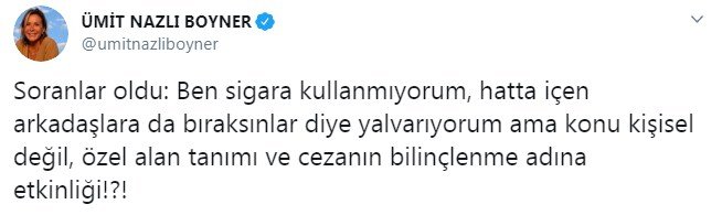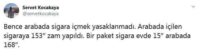 Aracında sigara içene 153 TL ceza kesilmesi sosyal medyanın gündeminde. Yasağın başlaması ile birlikte 37 bini aşkın personel ile yapılan uygulamada 5 bin 63 sürücüye sigara cezası kesildi. Yurt genelinde birçok sürücü söz konusu yasaktan haberdar olmadıklarını, kesilen cezalarla mağdur olduklarını söylüyor. Sosyal medyada ise konu trend topic’lere girdi. Sanatçılar da konuyla ilgili tepkilerini dile getirdi. Ağırlıklı olarak özel araçta sigara içiminin yasaklanmasına tepki gösterildi. İşte, o tepkiler: