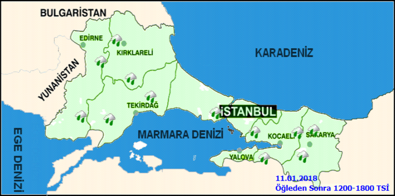 Öte yandan Meteoroloji Genel Müdürlüğü'nden alınan bilgiye göre, Marmara Bölgesi'nin bugün parçalı çok bulutlu, bölgenin batısının sabah saatlerinden, İstanbul, Kocaeli ve Yalova'nın ise öğle saatlerinden itibaren aralıklı yağmurlu geçeceği tahmin ediliyor. İstanbul, Yalova ve Tekirdağ çevrelerinde sabah saatlerinde pus hadisesi bekleniyor.