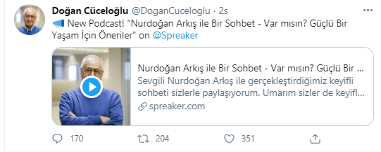Doğan Cüceloğlu'nun hayatını kaybetmeden 2 saat önce sosyal medya hesabı twitter üzerinden podcast paylaşımı yaptığı belirtildi.