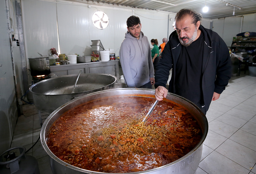 Yalçınkaya, İslahiye'de günlük ortalama 2 bin kişilik yemek çıkarttıklarını belirterek, "Allah bu ülkeye böyle bir şey yaşatmasın. Şu anda acayip huzurluyum. Biz burada bazen üç veya dört çeşit yemek yapmaya çalışıyoruz. Buradaki bir kardeşimize bir tas çorba vermek benim içimin ferahlamasına neden oluyor." dedi.