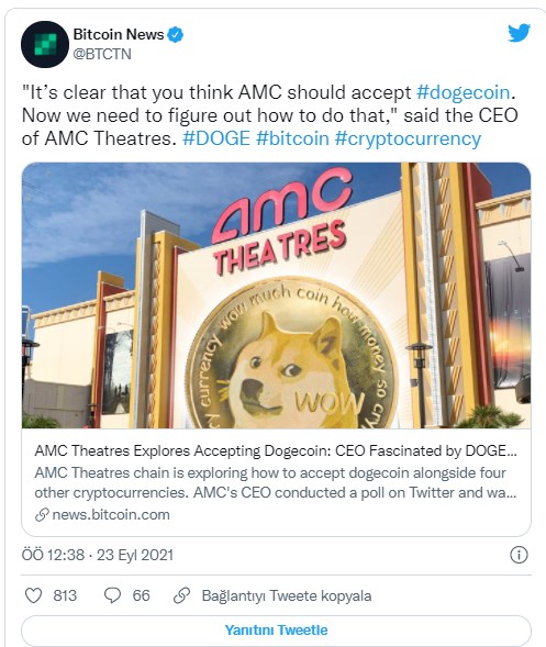AMC CEO'su Adam Aron, çarşamba günü, Twitter kullanıcılarından olumlu bir yanıt aldıktan sonra sinema zincirinin Dogecoin kripto para birimini bir ödeme şekli olarak kabul etme çalışmalarını başlatacağını açıkladı.