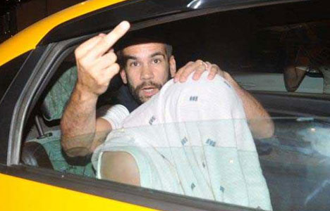 Fotoğraflarını çeken muhabirlere küfürler savuran Romain Dauriac, zorlukla durdurduğu taksiye bindikten sonra objektiflere orta parmağını gösterdi.