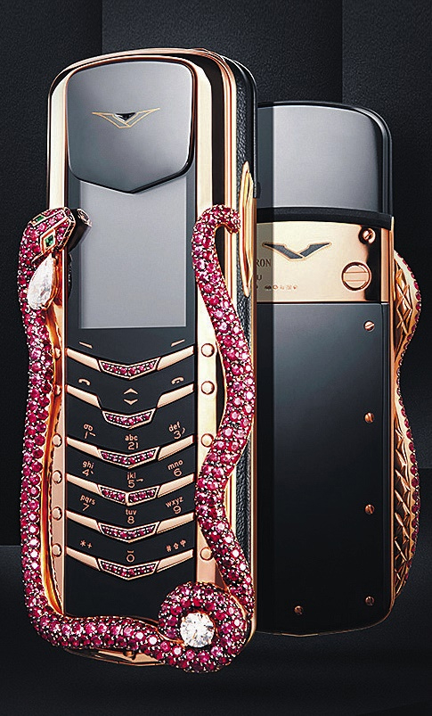 Adından da anlaşılacağı üzere telefonun üzerindeki mücevherler kobra yılanı şeklinde sıralanmış. Kobranın yeşil gözleri ise 2 zümrüt taşla süslenmiş...