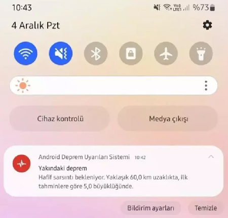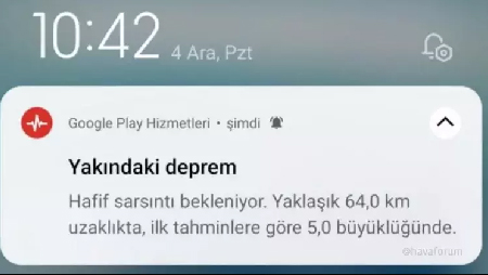 Ardından yıkıcı etkisi olan, daha güçlü hissedilen S dalgası bize ulaşmadan önce kullanıcılara bildirim gönderiliyor. İki tür bildirim var; küçük depremler için 'Farkında Ol' uyarısı, büyük depremler için ise 'Önlem Al' uyarısı. Telefonumuz rahatsız etme modunda olsa bile bir deprem olduğunda önlem al bildirisi sesli ve görsel olarak kullanıcıyı uyarıyor zaten. Depremin merkez üssüne bağlı olarak örneğin bu depremde Bursa'dakiler depremden 7 saniye önce bildirim alırken, İstanbul'dakiler 15-20 saniye önce bildirim alıyorlar. Çünkü yıkıcı etkisi olan ve güçlü hissedilen S dalgaları Bursa'ya yaklaşık 6-7 saniyede ulaşırken, İstanbul'a 15-20 saniye sonra ulaştı. Merkez üssünden uzaklaştıkça önlem almak için daha fazla zamanımız oluyor" dedi.