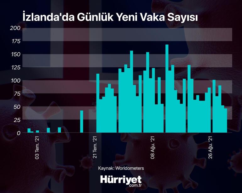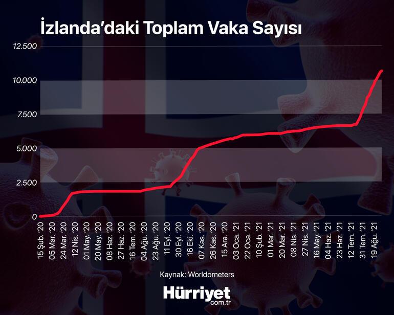 Salgının başından beri en yüksek günlük vaka sayısı 11 Ağustos'ta 170 olarak kaydedilen İzlanda'da şu anda bin 376 kişide aktif olarak Kovid-19 virüsü bulunuyor. Temmuz ayının sonlarından itibaren vaka sayılarında ciddi bir artış gözlenen İzlanda'da, mevcut vakaların %2’sinin ciddi hastalığa yakalandığı belirtildi.