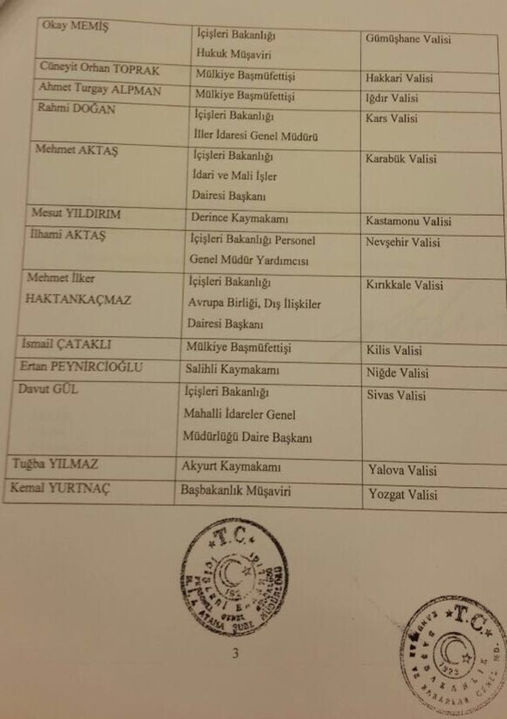 İçişleri Bakanlığı'nın Valiler Kararnamesi Resmi Gazete'de yayımlandı. Buna göre; 22 vali merkeze alındı, 24 ile yeni vali atandı. 26 il valisi de kendi içerisinde yer değiştirdi.