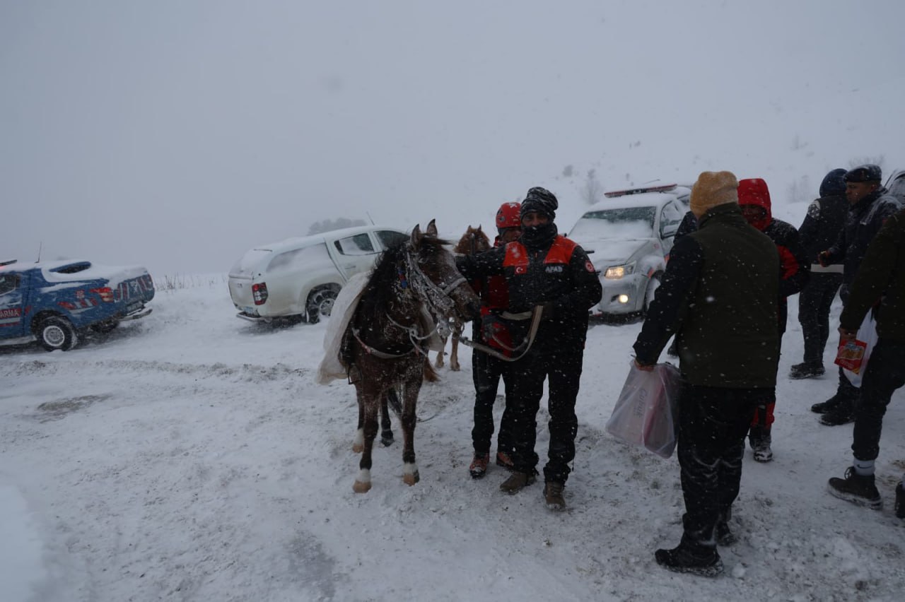 Çığa maruz kalan bini aşkın küçükbaşın güvenli alana nakledildiği çalışmalarda 100 kişilik ekip yer alıyor.