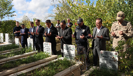 Kaymakam ve Belediye Başkan Vekili Nuri Mehmetbeyoğlu ile kurum amirleri, Beyazıt Mahallesi'ndeki Seyyit Muhammed Mezarlığı'na geldi.