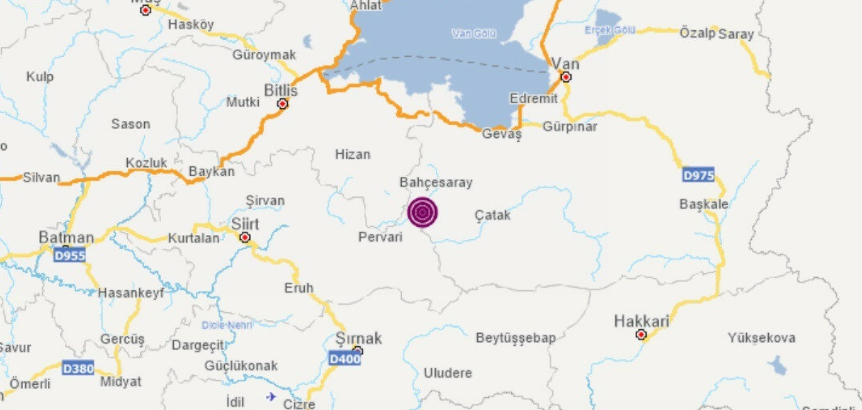 AFAD'dan yapılan açıklamada, Van Bahçesaray'da saat 12.48’de 4 büyüklüğünde bir depremin meydana geldiği belirtildi.