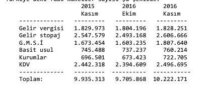 Mükellef sayısında geçen yılın aynı ayına göre yüzde 2,89 artışyaşandı. Gelir İdaresi Başkanlığı'nın açıkladığı vergi mükellefi verilerinden derlenen bilgiye göre, gelir stopaj, Gayri Menkul Sermaye İradı(G.M.S.İ.), basit usul, kurumlar ve katma değer vergisi faal mükellef sayısı 10 milyon 222 bin 171 olarak belirlendi.