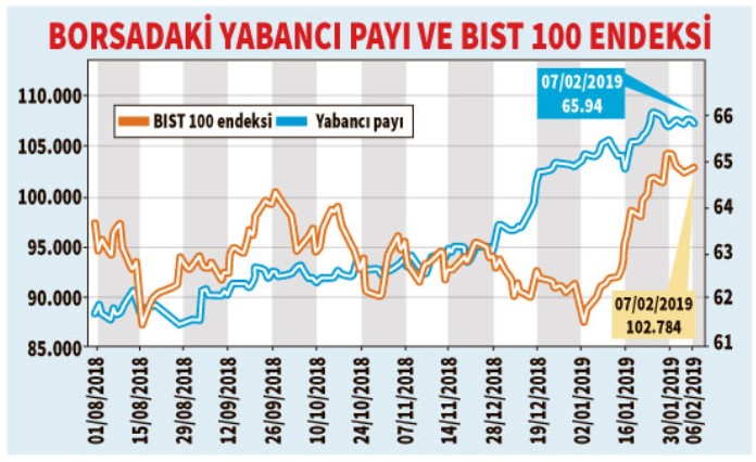 3 - 26 Temmuz’da yüzde 61,36 olan borsadaki yabancı payı 7 Şubat itibariyle 65,94 seviyesinde bulunuyor.
