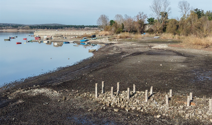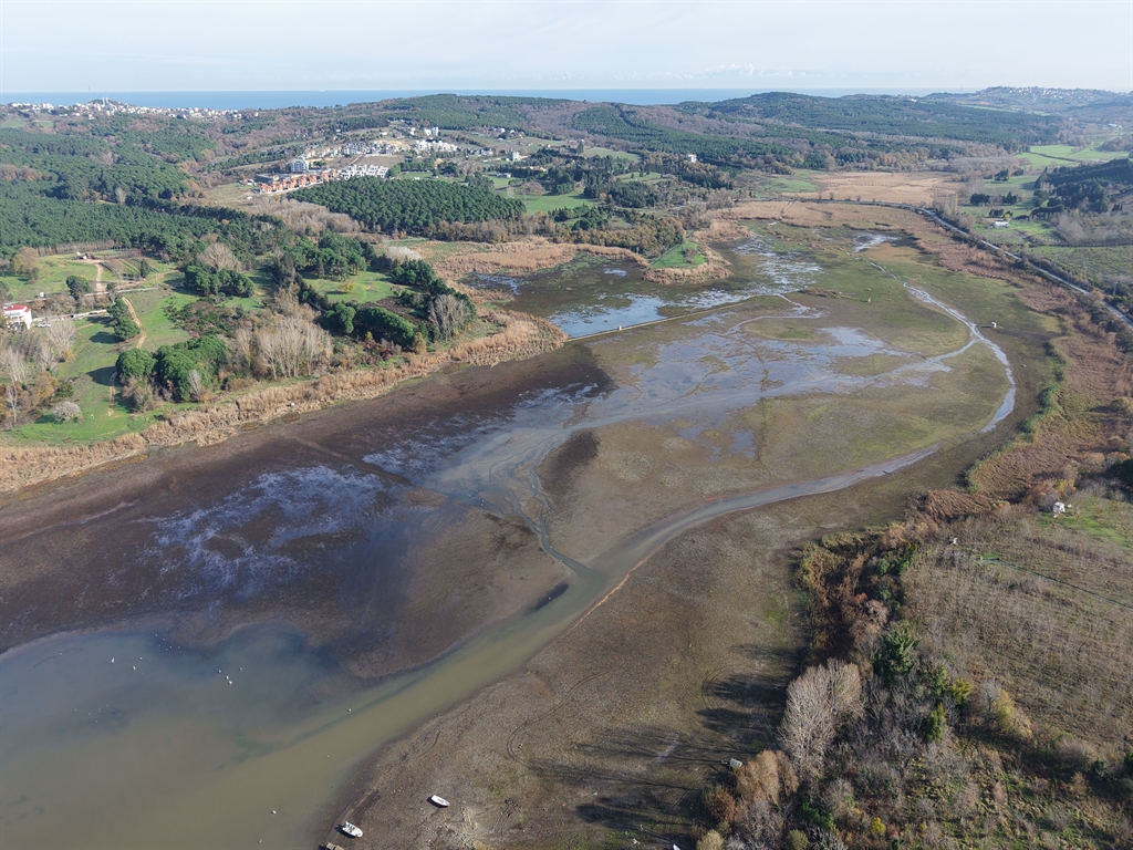 İstanbul’un en büyük barajlarından biri olan Terkos Baraj Gölü’nde doluluk oranı yüzde 19,01’e kadar düştü. Daha önce suyla kaplı olan geniş alanların büyük ölçüde kuruduğu, bazı teknelerin ise sudan onlarca metre uzakta balçık ve çamur içinde kaldığı gözlemlendi. Bölgedeki son durum havadan da görüntülendi.