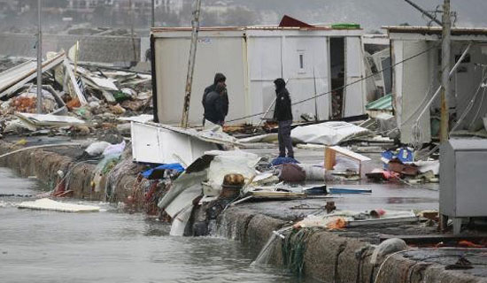Sahil bandındaki istinat duvarları, dalgaların etkisi ile zarar gördü. Balıkçı barınakları yıkılırken, tekneler de zarar gördü. Sahil yolunun bir bölümü yaya ve araç trafiğine kapatıldı.