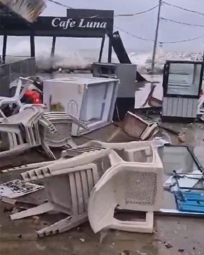 İşletme sahibi Ali Altınbaş, afet yaşadıklarını söyleyerek, "Dün gece çıkan şiddetli rüzgar ve yağmurun etkilerinden bizler de nasibimizi aldık. Çok aşırı bir rüzgar vardı. Deniz, 3 metre kadar kabardı ve daha sonra dalgalar 5 metreye çıktı. Dalgalar, şiddetli rüzgarın etkisi ile buradaki kafeteryamıza da zarar verdi. Denizden 20 metre kadar kum ve çakıllar sürüklendi. Doğal afettir, bu. Yetkililerden destek bekliyoruz. Canımız sağolsun diyoruz" dedi.