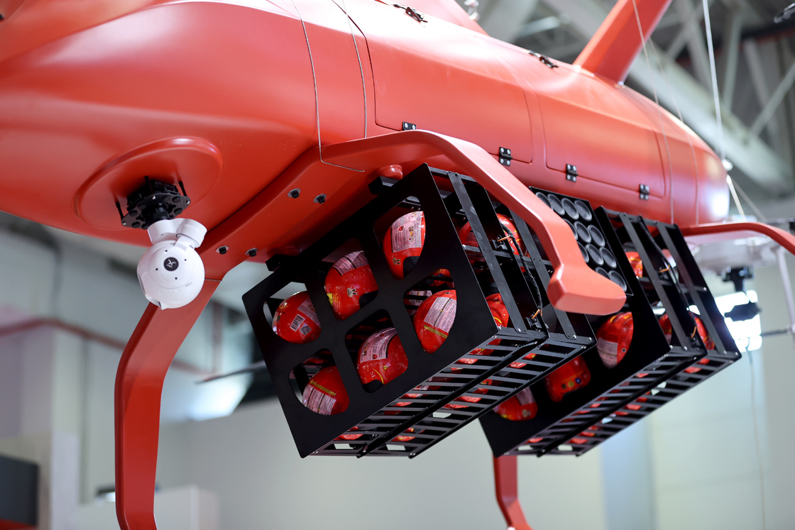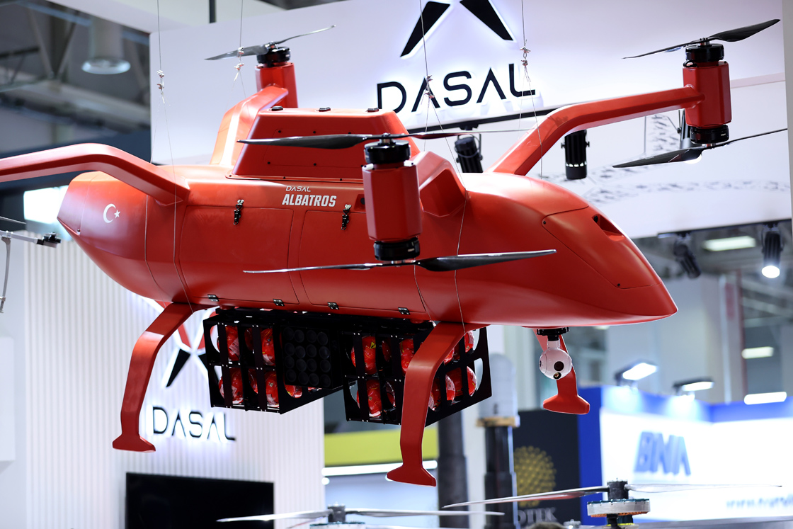 DASAL, bu konseptte söndürme ve soğutma görevlerinde kullanılmak üzere geliştirilen Yangın Bombalama İHA'sını 15'inci Uluslararası Savunma Sanayii Fuarı'na sergiledi.