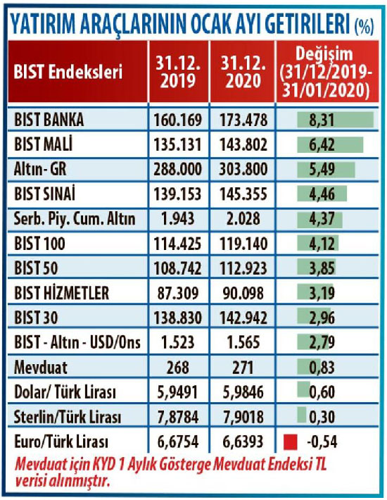 Yılın ilk ayı geride kaldı. Ocakta küresel piyasalara korona virüsü damgasını vururken dolarda oynaklık en düşük seviyelerde. Borsa ve altın kazandırıyor