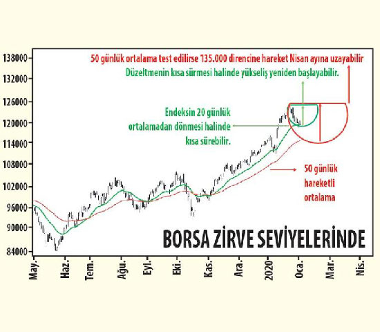114.660 seviyesinde 50 günlük ortalama bulunuyor. Aşağı yönelimin devam etmesi halinde endeksin 50 günlük ortalamasını test etmesi gündeme gelecektir ki böylesi bir durumda endeksin toparlanması iki ayı bulabilecektir. Bu senaryonun gerçekleşmesi halinde nisan gibi yeni bir hareket gündeme gelecektir. Endeksin 20 günlük ortalamadan toparlanarak yeniden 124.000’i aşması halindeyse hedef 135.000 olacaktır.
