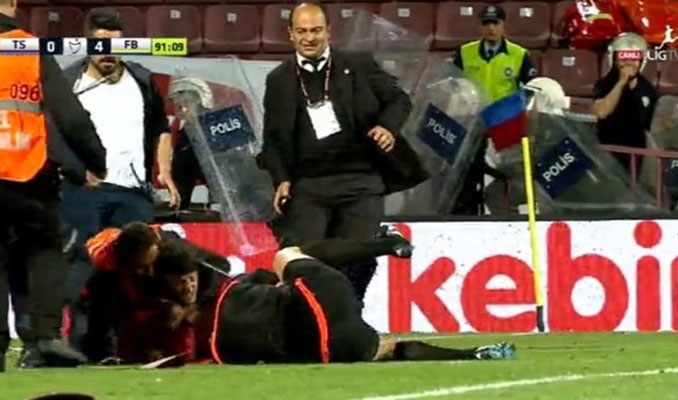 Karşılaşmanın 86. dakikasında saha karıştı. Avni Aker'de kale arkası tribünlerinden bir grup taraftar sahaya girdi. Güvenlik görevlileri sahaya giren taraftarlara müdahele etti. Karşılaşma 89.dakikada yarım kaldı. Sahaya giren bir taraftar maçın 6. hakemi Volkan Bayarslan'ı tekme tokat dövdü. Araya giren güvenlik görevlileri Bayarslan'a taraftarın elinden zor aldı.