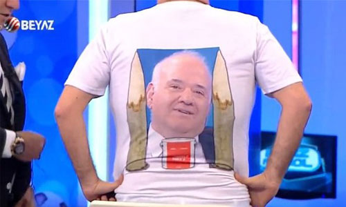 Önünde Emin misin? Son kararın mı? yazan, sırt kısmında ise kazık figürü bulanan tşörtle programa çıkan Çakar Beşiktaşlılara olan sözünü bu şekilde tutmuş oldu.