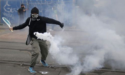 Fransa'da çalışma yasa tasarısını protesto eden binlerce kişi bugün de sokaklara döküldü.