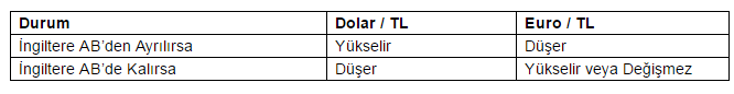 (1) İngiltere’nin AB’den çıkması (Brexit) veya çıkmamasının (Bremain) TL üzerine olası etkileri: