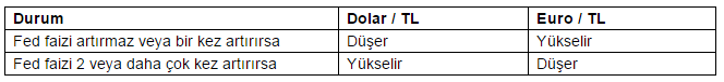 (2) Fed’in faizi artırması veya artırmamasının Türkiye ekonomisi üzerine olası etkileri: