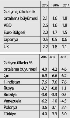 Global reel büyüme 2015 yılında tüm ülkeler beraberce incelendiğinde yüzde 3.2 olmuştu. 2016'da ise yüzde 3.1 olması bekleniyor, 2017 yılında ise beklenti yüzde 3.2 olması.