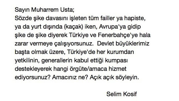 Fenerbahçeli yönetici Selim Kosif, Trabzonspor'un CAS açıklamasının ardından Trabzonspor Başkanı Muharrem Usta'ya hitaben resmi twitter hesabından çok sert bir açıklamada bulundu.